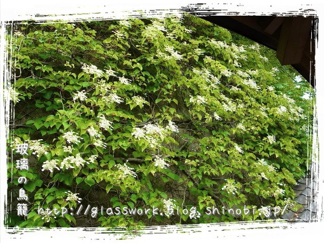 「イワガラミ」というお花で本堂の裏の岩壁に貼り付いて伸びているので、