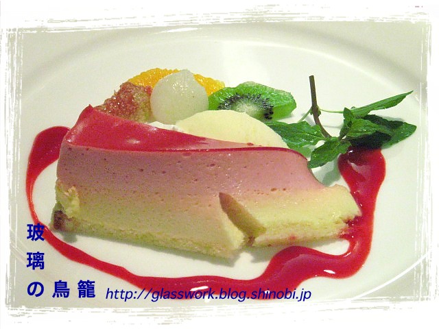 ケーキに少し隠れている生クリームとバニラアイスと一緒に食べて、