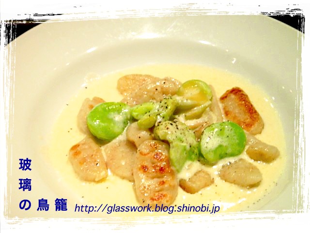 チーズたっぷりのクリームソースに空豆入り。